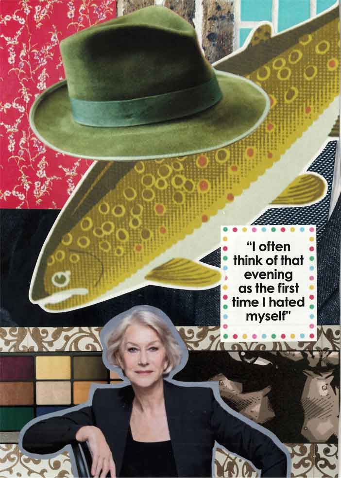 This page features a fish wearing a green hat, a make up palette and Helen Mirren looking grey and glorious while a garing eye looks at the camera.